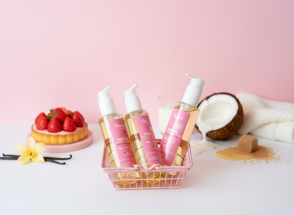 Des produits naturels, sensoriels et joyeux, pensés pour hydrater la peau avec douceur… tout en te faisant plaisir.